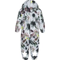 Pyxis är en funktionell overall till baby och små barn i Molo's tryck 'Frozen Flowers'. Overallen har avtagbar huva, två snedställda dragkedjor, som gör dräkten lätt att ta av och på, snölås i benslut, samt fothällor i gummi och Molo's karakteristiska reflexstjärna på ärmar och bak på benen. Overallen är vind- och vattentät och har bra andningsförmåga, har 3M™ Thinsulate™ foder, fleece i hög kvalitet vid utsatta områden och tejpade sömmar. Produkten har en vattenavvisande PFC-fri impregnering (innehåller ej PFOS, PFOA eller liknande). Vattenpelare: 10.000 mm. Andningsförmåga: 8.000 g/m2/24t.