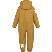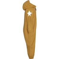 Wake er Molo's nye regndragt i en flot honningfarve. Dragten er god til til det meste vejr, men perfekt når det regner og blæser og er dejlig at have på, da dragten også har en god åndbarhed. Dragten har aftagelig hætte, lynlås ned langs fronten med overslag, der afskærmer for vind og vand, samt flere stjerne reflekser. Dette produkt har en vandafvisende PFC-fri imprægnering (indeholder f.eks. ikke PFOS, PFOA og lignende). Vandsøjletryk: 8.000 mm. Åndbarhed: 8.000 g/m2/24t.